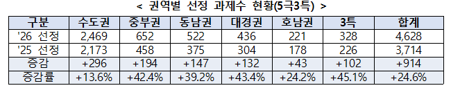 실제 데이터를 보면 이러한 정책 방향은 분명히 드러납니다. 수도권 과제 수는 전년 대비 13.6% 증가한 반면, 충청권 42.4%, 동남권 39.2%, 대경권 43.4%, 기타 권역 45.1% 등 지방 권역은 대부분 40% 내외의 증가율을 보였습니다. 그 결과 전체 기초연구 과제에서 수도권 비중은 2025년 58.5%에서 2026년 53.3%로 약 5%포인트 감소했습니다. 과제 총량은 증가했지만 연구비 배분 구조는 분명히 지역 균형 중심으로 재편되었습니다.